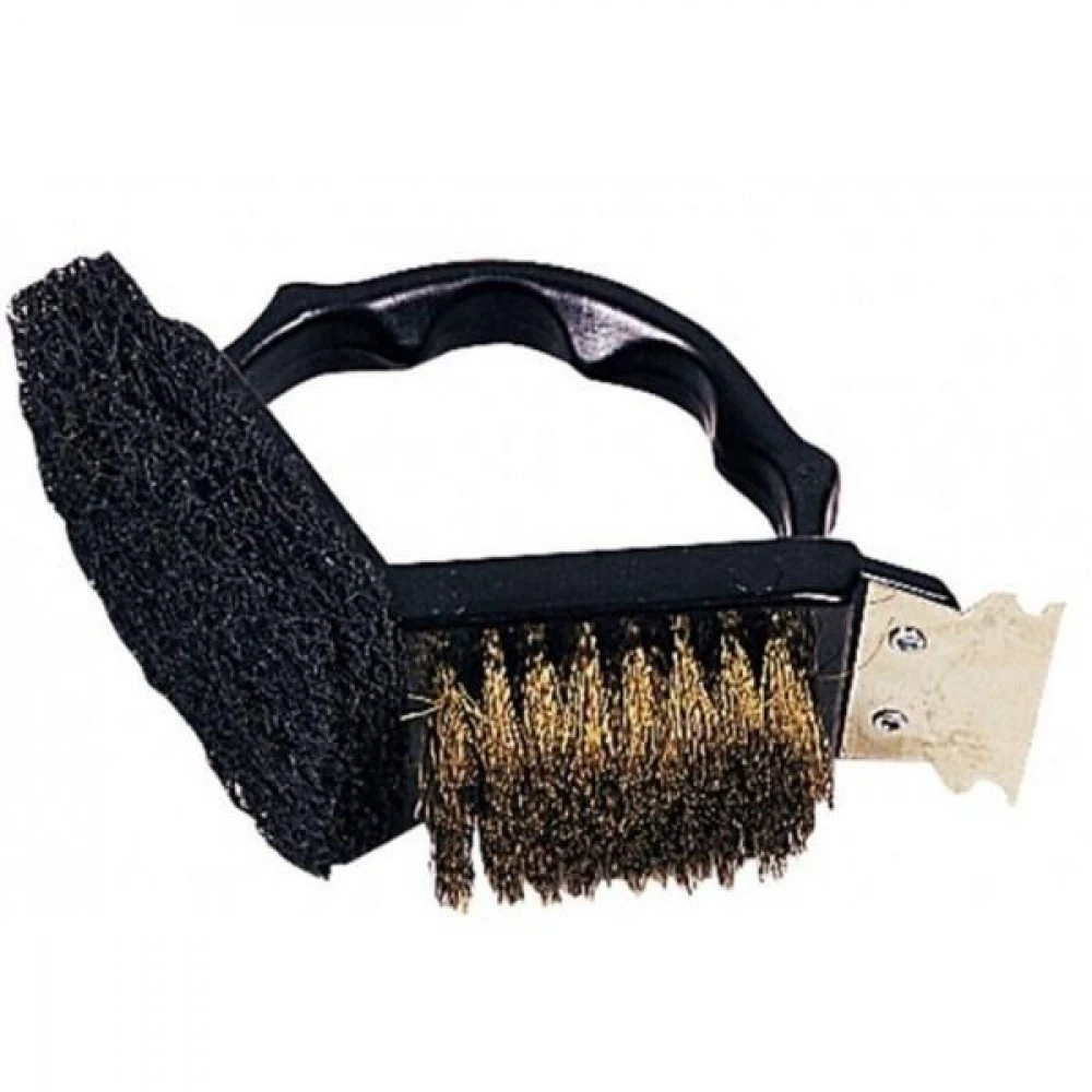 Brosse grattoir CAO OUTDOOR 3 fonctions pour le nettoyage des grilles de cuissons de camping-car, bateau ou camping.