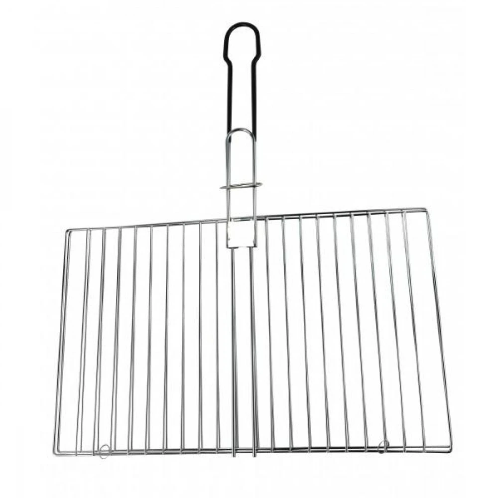 – Dimensions du gril : 41 x 25 cm- Longueur : 50 cm- Matériau : acier- Poignée gainée isolante