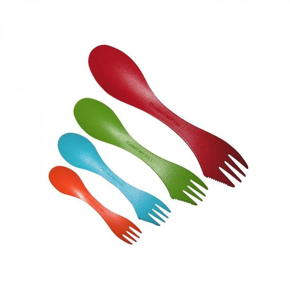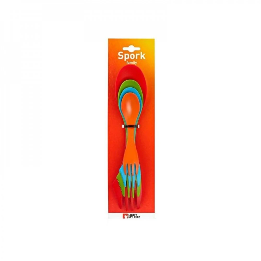 Le Pack Spork Family Light My Fire est un lot de 4 couverts Spork (4 tailles différentes de Spork). Qu’est ce qu’une Spork ? C’est un couvert multifonction suédois, léger et durable, combinant une cuillère, une fourchette et un couteau. Achat utile, le pack Spork Family présente l’avantage de s’adapter à toute la famille, toutes les utilisations, tous les sacs à dos et toutes les activités.
